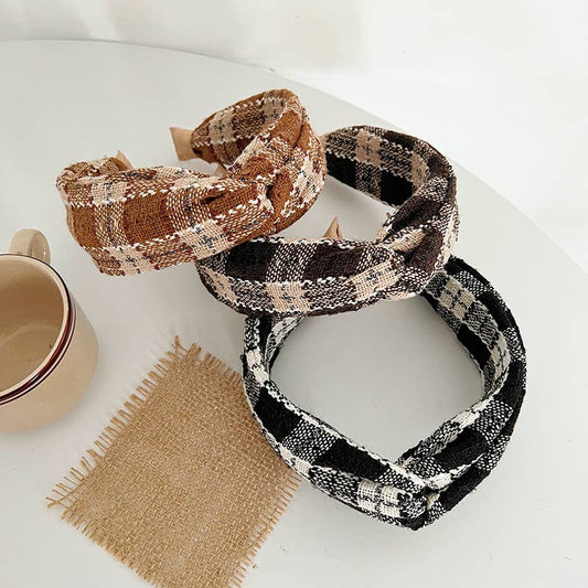 Fall Knit Plaid Twist Headband