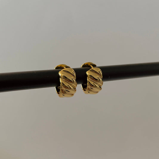 Mini Emma Ribbed Earrings-Gold