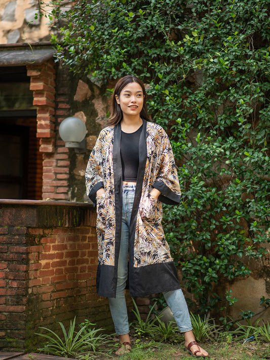 Frond Black Kimono