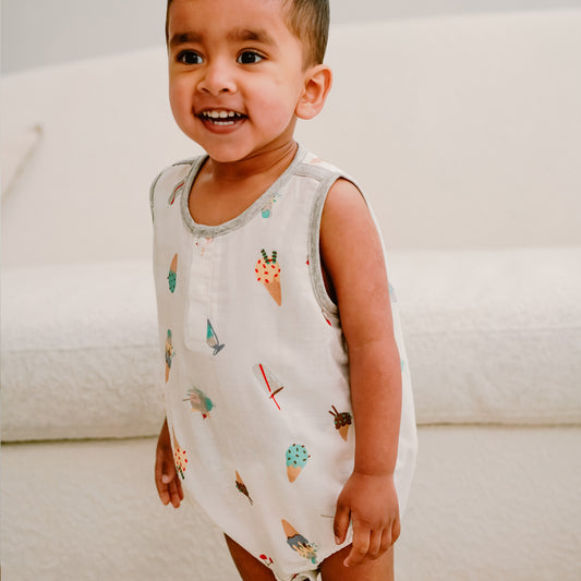 Sleeveless Button Down Onesie (Bamboo) - Ice Cream Summer
