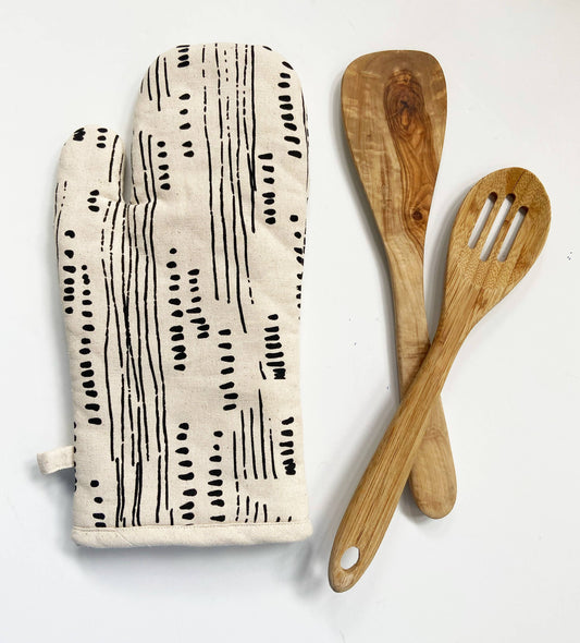 Natural Cotton Oven Mitts - Vegetable Pattern