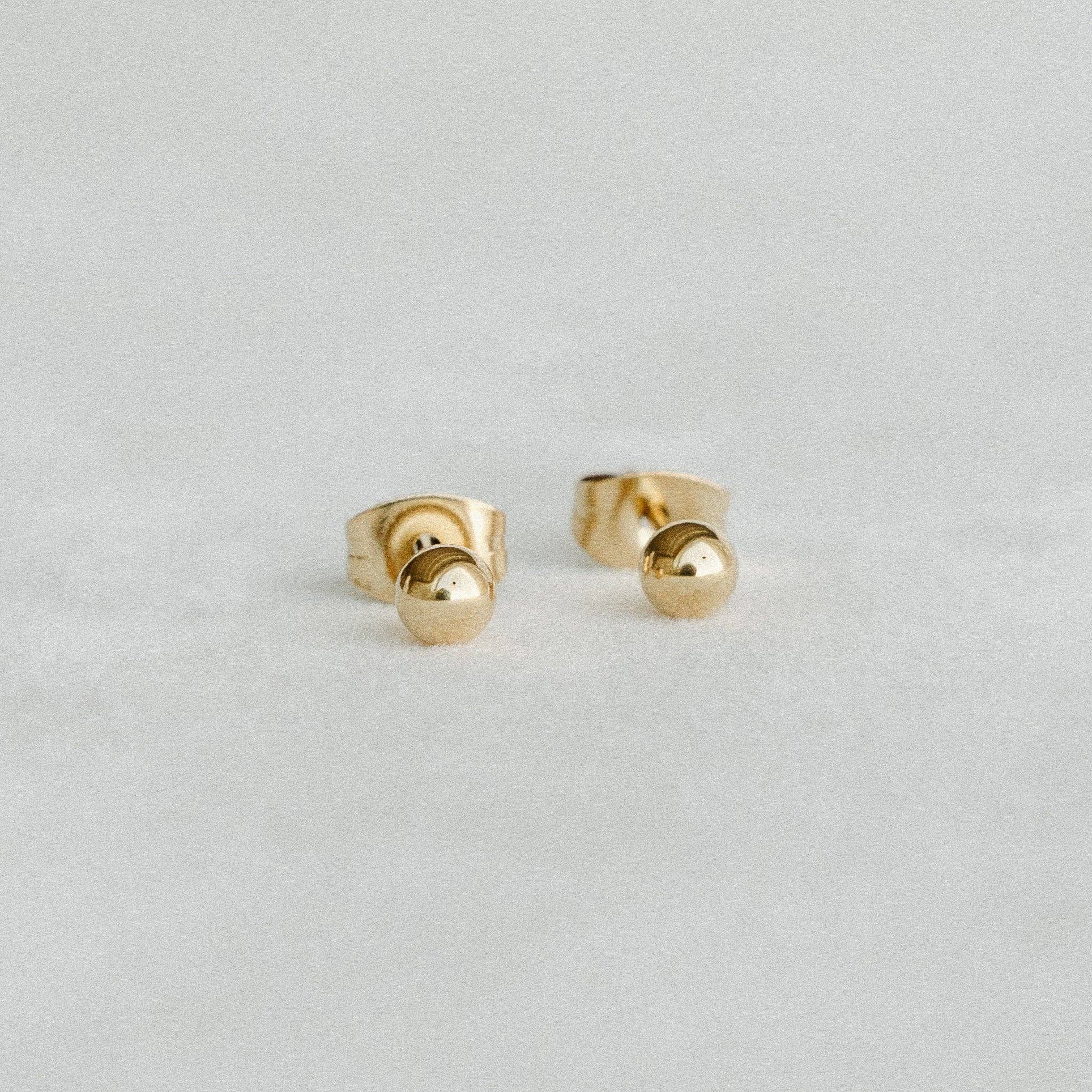 Meet our Ball Studs, a simple yet stylish addition to your jewelry collection. As a proud woman-owned business, PETITE GOLD designs these sustainable, everyday pieces in Calgary, Canada. Each pair is handcrafted with love, ensuring high quality that doesn't break the bank. Our studs are made with hypoallergenic and anti-tarnish materials, including gold filled & sterling silver, making them safe for even the most sensitive skin. Your first order includes a free customized display. Thank you for supporting small businesses.