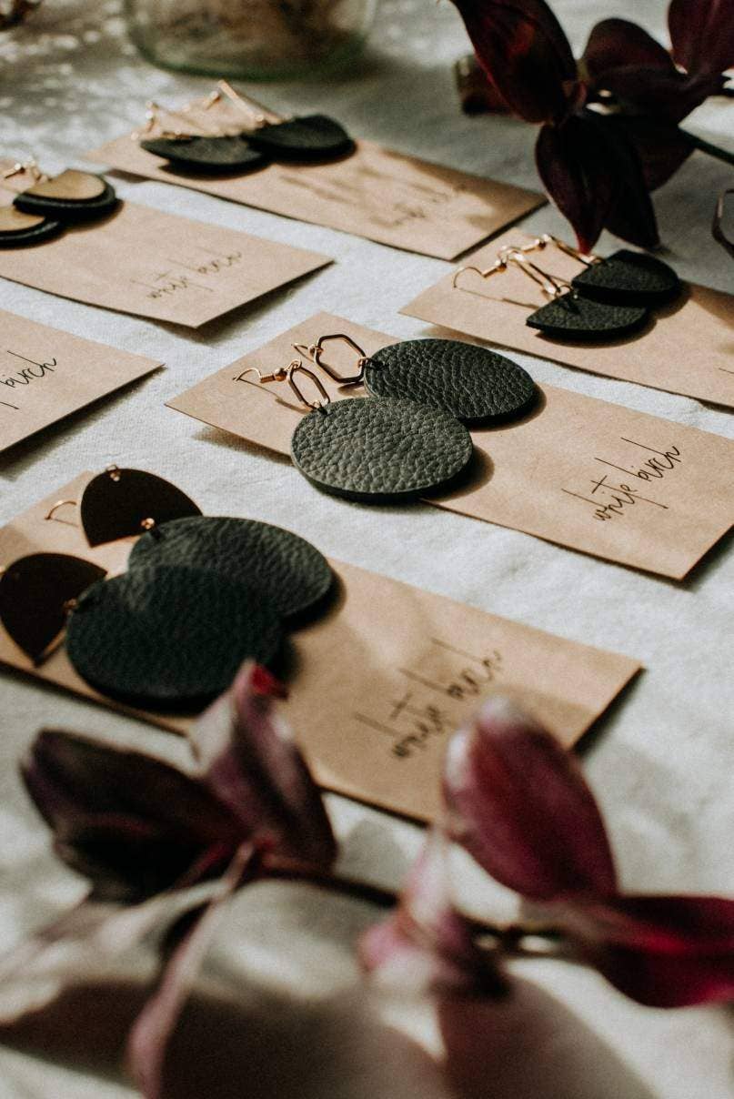 Our genuine leather earrings are hand cut therefore each piece is unique. We also pay close attention to the natural variations, wrinkles and creases of the leather which adds to the popular slightly distressed look. Pairs are very closely matched, but some variations are to be expected and your earrings may not be identical to the earrings pictured.