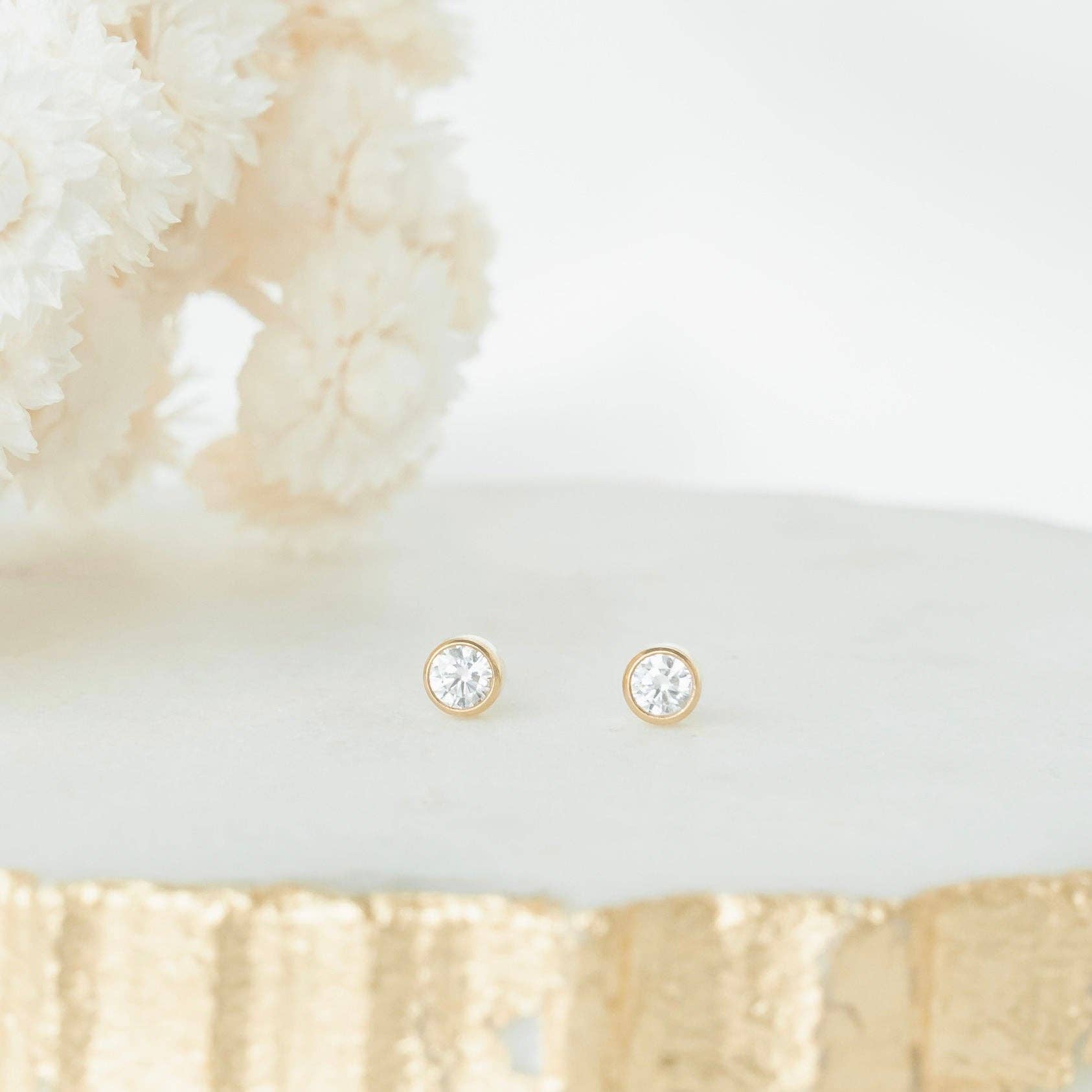 14K Gold Filled studs with a Zirconia in Small (2mm) or Medium (4mm)