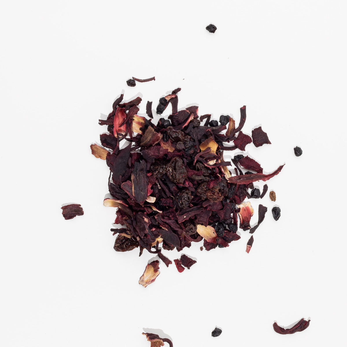 A vibrant berry tea with rich and delightfully tart jammy flavours