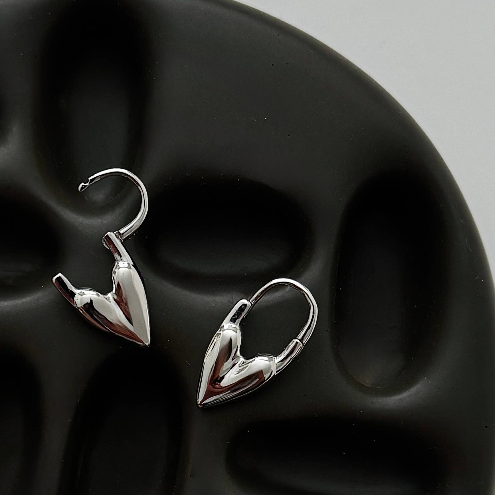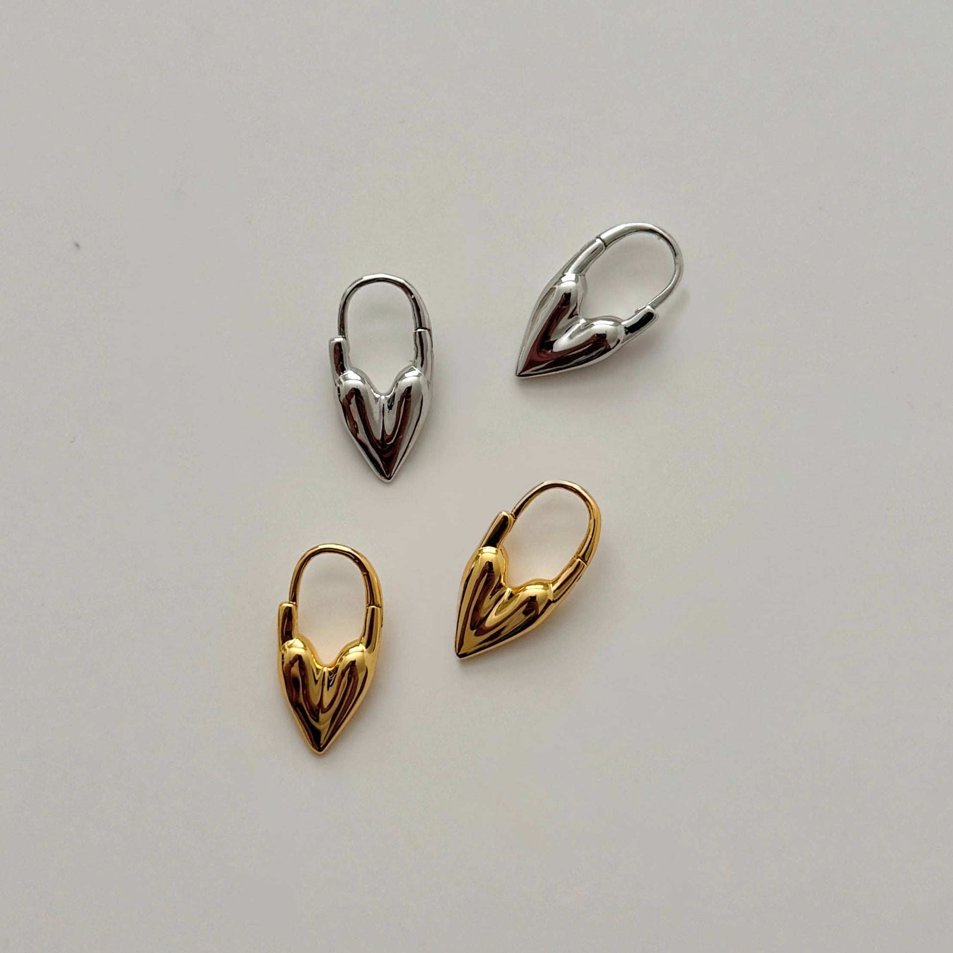 The earrings feature a unique heart-shaped padlock design, perfect for adding a touch of elegance and style to any outfit. These Huggie hoops are a must-have for any fashion-forward individual.