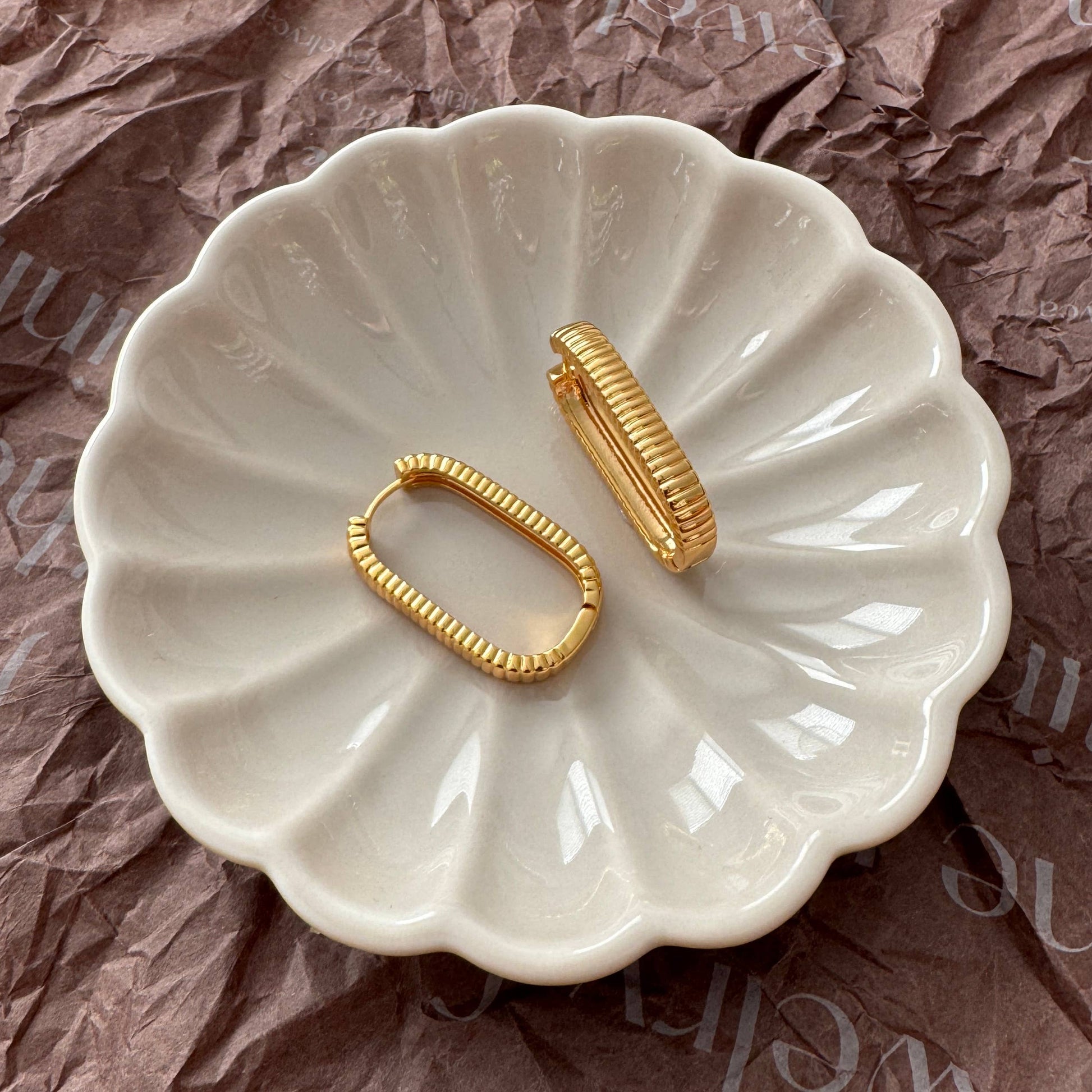 These ribbed earrings combine texture with minimalist design. A must have piece for your jewelry collection.