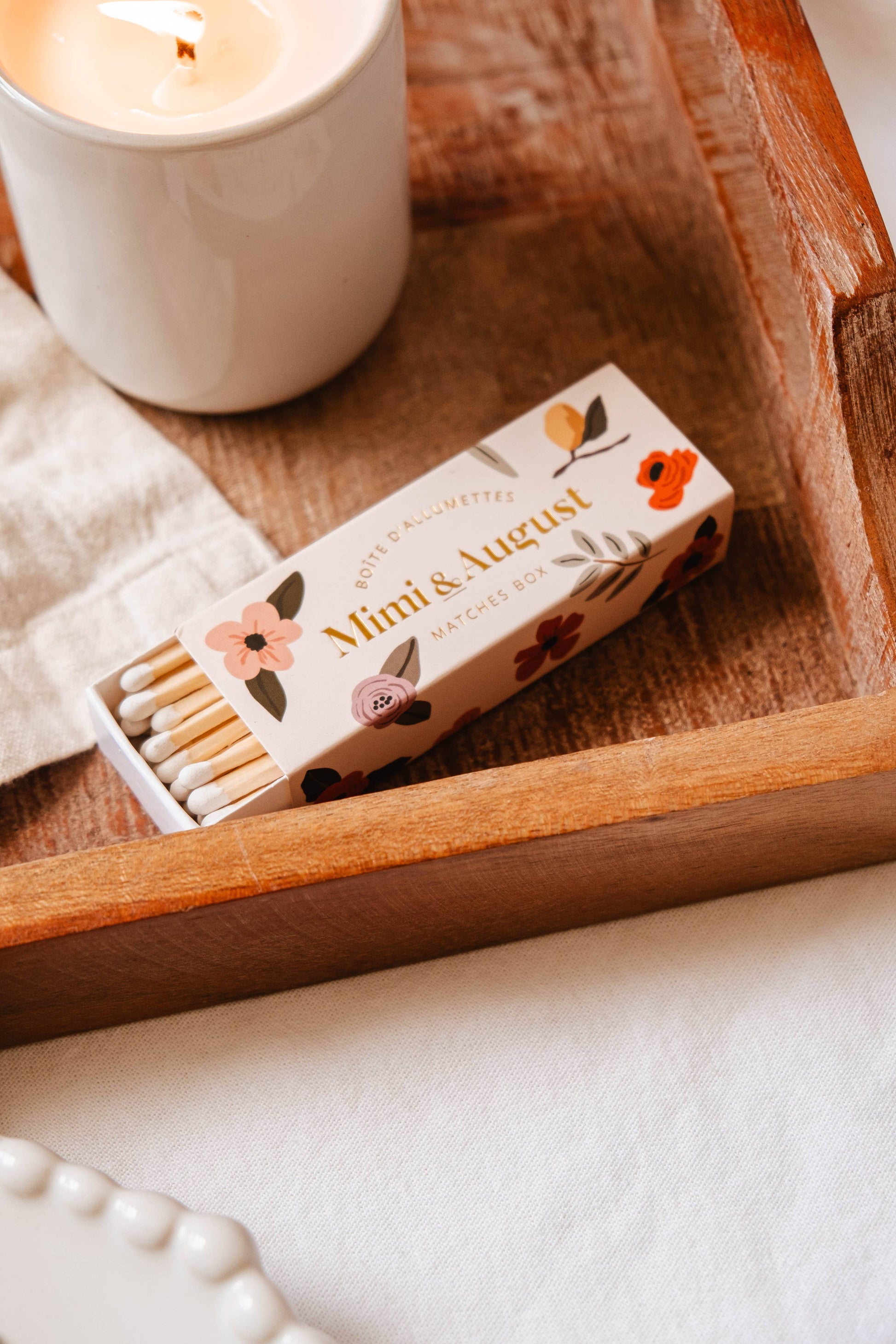 Ignite a little enchantment every time you strike a light with our Mimi matches! These matches aren’t just ordinary sticks. They're little wands of whimsy waiting to sprinkle magic in your every day. Why You'll Absolutely Adore Them: -Prettiness Overload: With an intricate floral design, this matchbox is not just a utility but an accessory! Place them on your coffee table, and watch guests go, "Where did you get those?!"