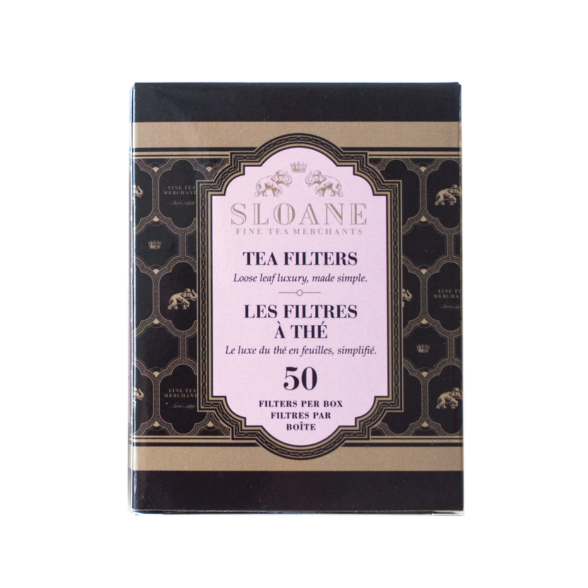 Sloane single use tea filters. These beautifully packaged filter bags are biodegradable and complete with a string and a tag. They are perfect for portioning as much or as little loose leaf tea as you wish to infuse into your cup or teapot. Available in packs of 50
